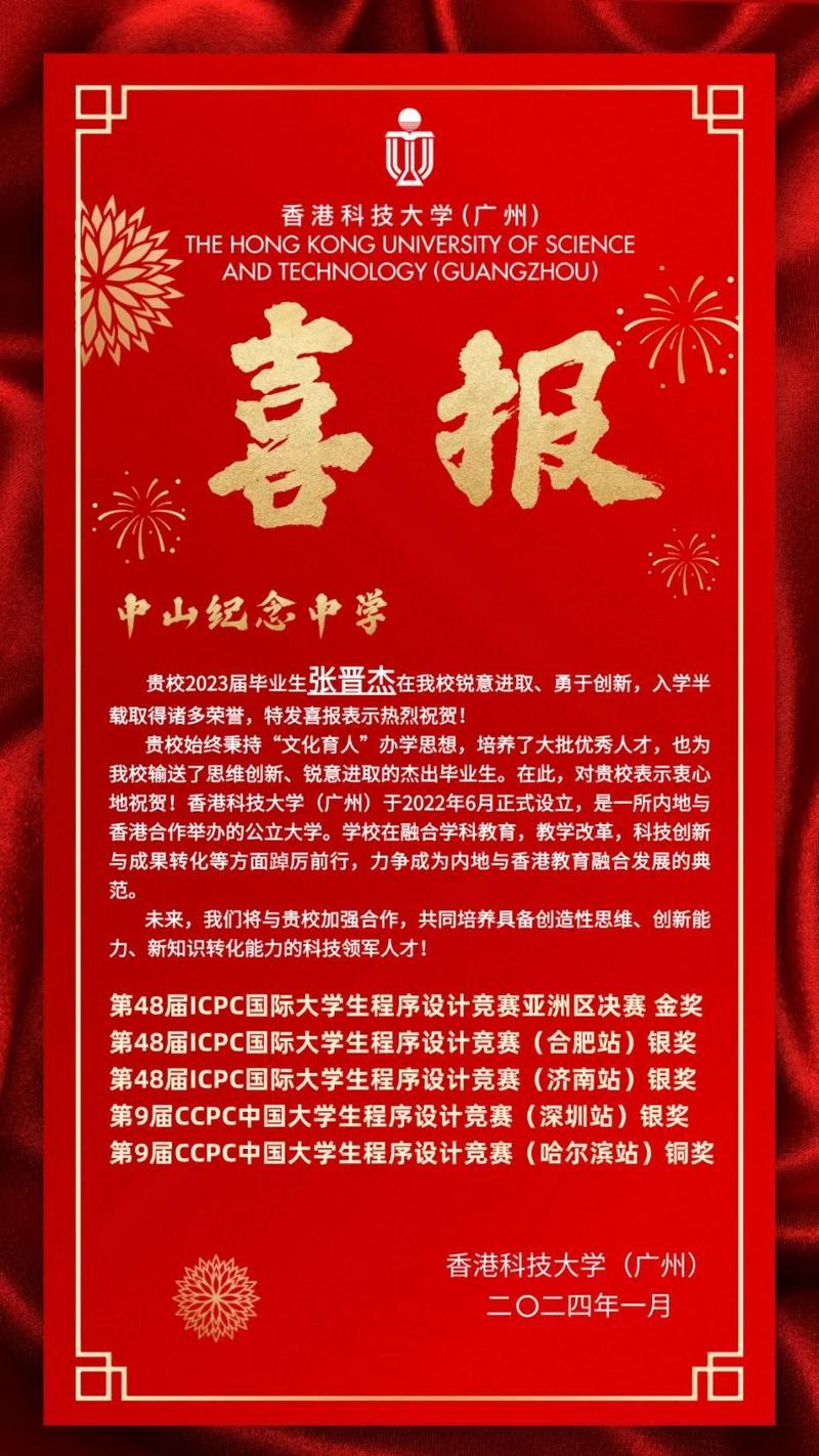 记者从中山市中山纪念中学了解到,近日该校收到香港科技大学(广州)发来的喜报,实盘配资查询平台优配在第48届国际大学生程序设计竞赛(ICPC)亚洲EC区决赛中,中山纪念中学2023届学子张晋杰带领香港科技大学(广州)参赛团队获得金奖。